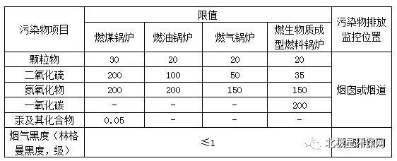 乌鲁木齐市九游J9(中国)大气污染物排放标准汇总