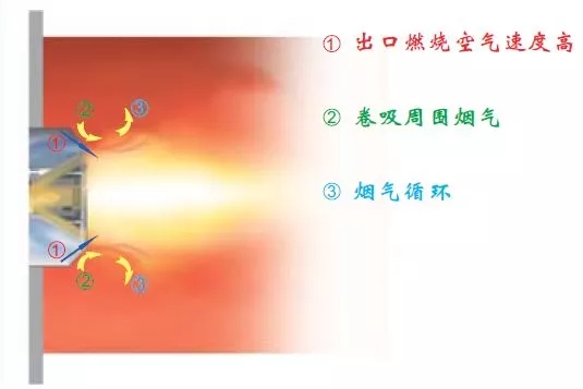 分级燃烧技术虽然可以一定程度降低氮氧化物的产生,但是很多燃烧器在实际使用中没有完全实现助燃空气和燃气的充分混合,炉膛内存在局部高温区,其温度高于产生热力型NOx的温度,造成NOx浓度超标。另一方面,有可能出现燃料和空气的混合流动不佳,造成一氧化碳超标,局部积碳等不完全燃烧的现象。为了降低反应温度,需要尽可能使火焰分散,扩大火焰形状,也就是说需要结合炉膛配合使用,而大多是情况是炉膛体积有限,为了避免火焰相对炉膛过大,通常会降低燃烧器的输出功率,这样可以降低NOx浓度及保证充分燃烧,但是缺点是九游J9(中国)的功率下降了,而且有烟气冷凝的风险。